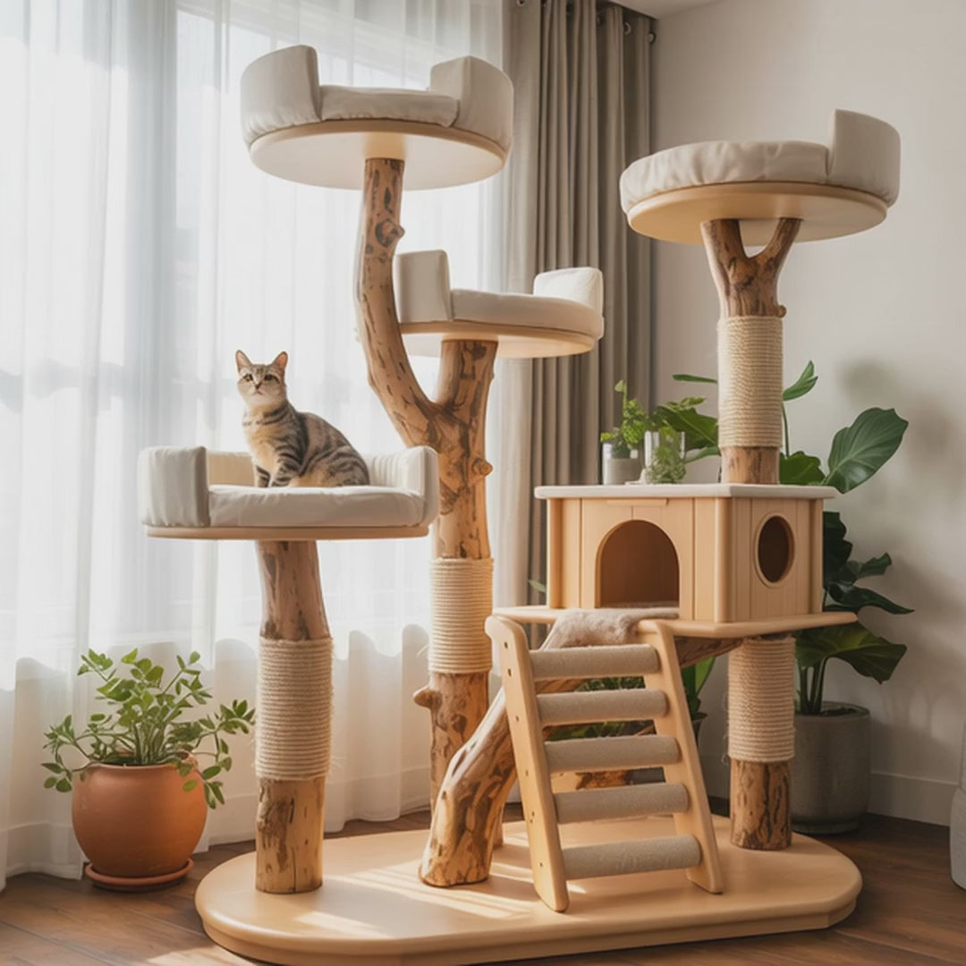 🌿 Rustic Driftwood Wall-Mounted Cat Tree – Handcrafted for Style & Play