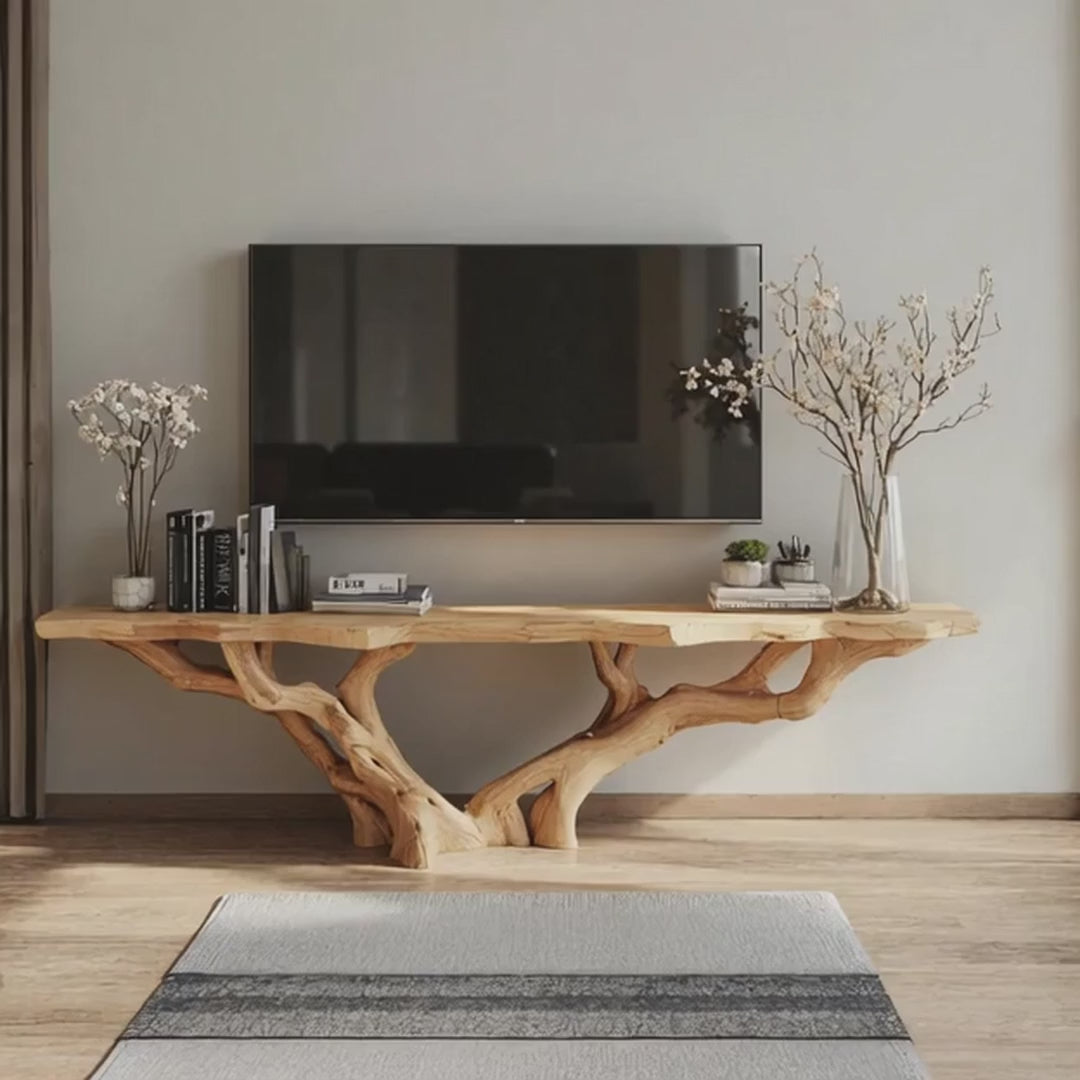 Handcrafted Solid Wood TV Cabinet – Rustic & Modern Living Room Furniture