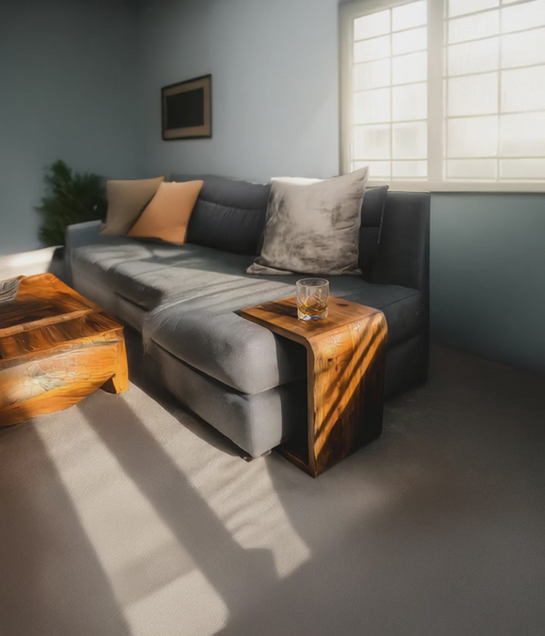 ✨ Extra Long Sofa Armrest Table – Handmade Solid Wood