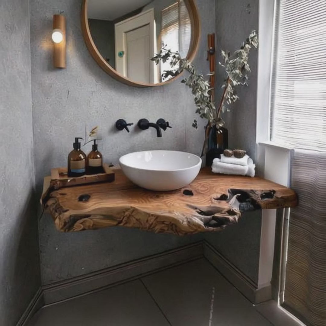 Handcrafted Rustic Floating Bathroom Vanity – Custom Live Edge Shelf with Natural Sink Unit, Solid Wood Bathroom Decor