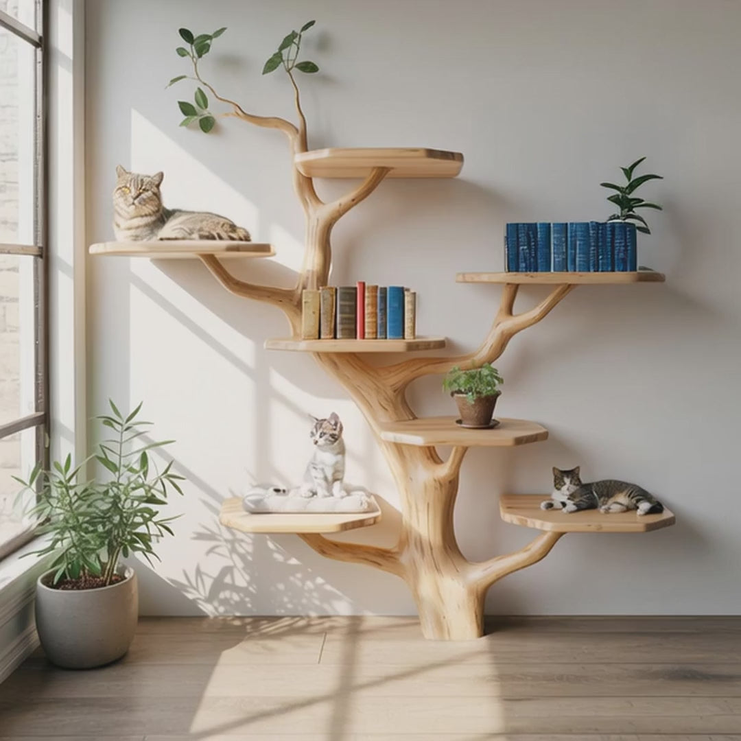 🌿 Rustic Driftwood Wall-Mounted Cat Tree – Handcrafted for Style & Play