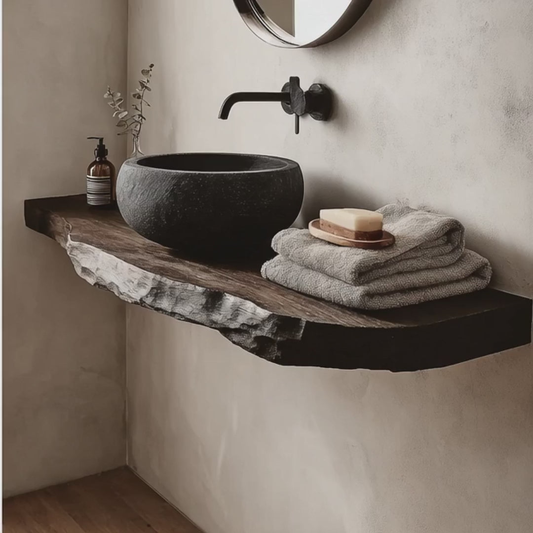 Rustic Corner Vanity Shelf – Handmade Live Edge Bathroom Shelf with Wall Mounted Brackets