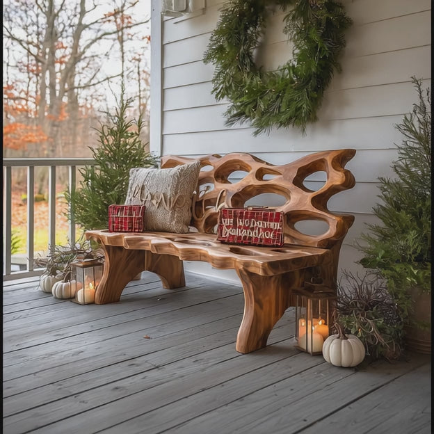 Rustic Farmhouse Wooden Porch Bench – Solid Wood Entryway & Outdoor Seating